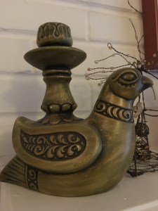 Rare pair of green ceramic hen and rooster candlestick holders found on a trip to Rosenberg, Texas
