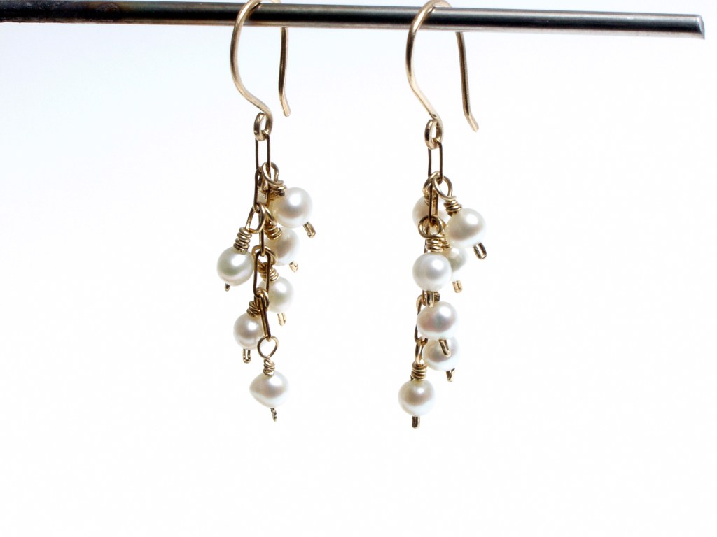 While euro wire and hook wires are readily available to purchase, sometimes I like to make my own so I can use heavier charms in multiple layers. For the pair below, I took apart a broken silver bracelet and used two ornate segments as the centerpiece. I added a real pearl using gold head pins for the bottom dangle. I then made the ear wire from heavier 20 gauge sterling silver wire for balance.