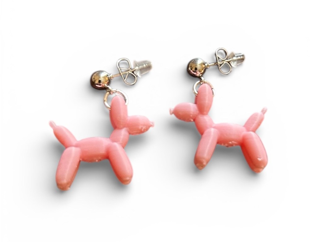 The pink balloon dogs shown were purchased in a thrift shop recently. I will replace the posts with euro wires and wear them to remember a recent visit to The Balloon Museum with some dear friends.
